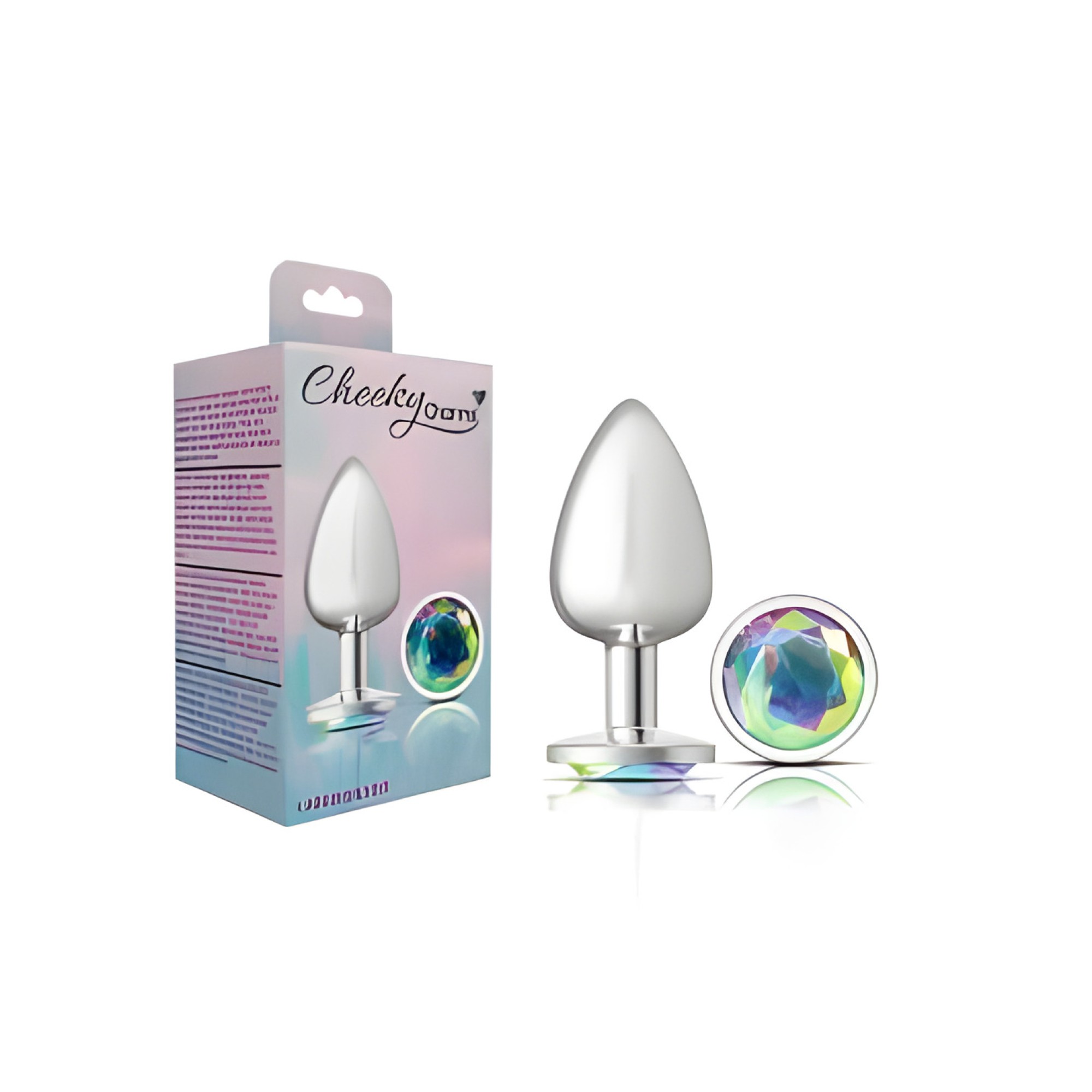 Enhance your intimate experiences with the Cheeky Charms Round Clear Iridescent Large Silver Plug.