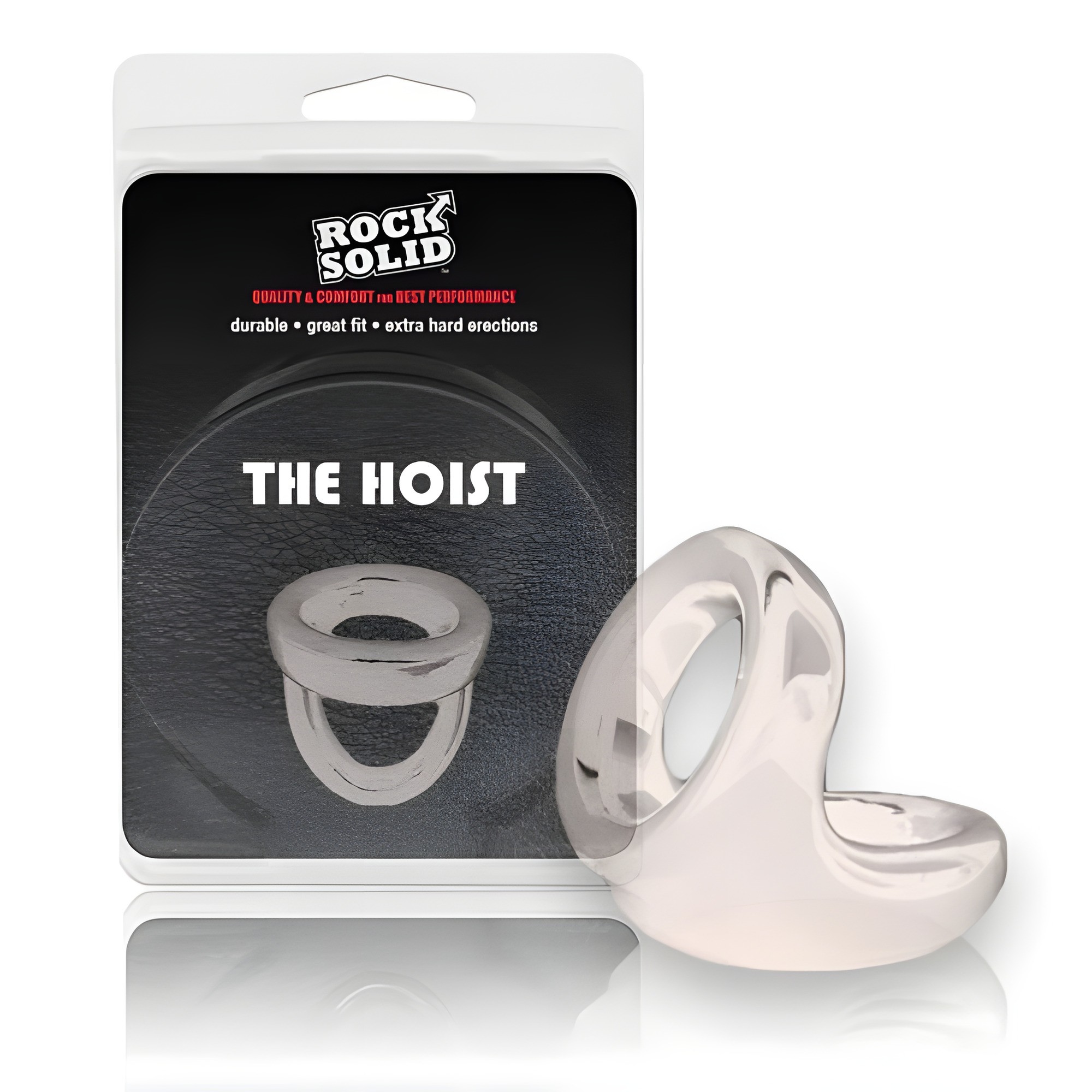 Experience enhanced pleasure with the Rock Solid Smoke The Hoist Cock Ring, designed to fit snugly for increased sensitivity and enjoyment during intimate moments.
