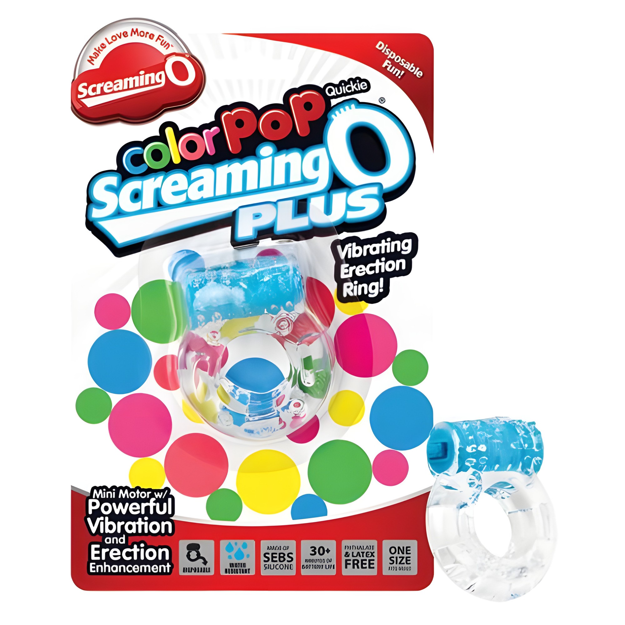 Enhance your intimate experiences with the Screaming O Color Pop Quickie O Plus! This vibrating erection ring keeps him harder longer, providing powerful stimulation for her pleasure.
