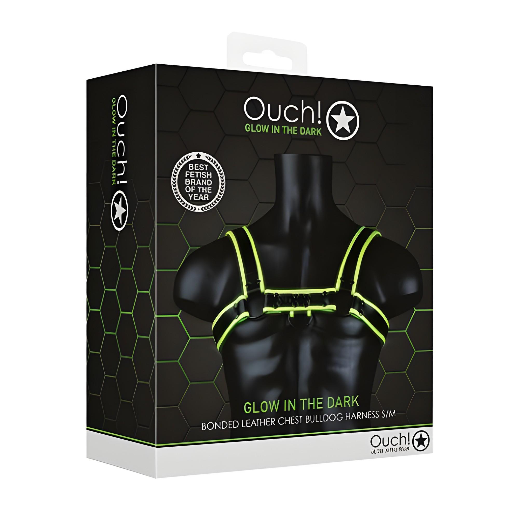 Embrace your bold side with the Ouch Chest Bulldog Harness, designed to glow in the dark.