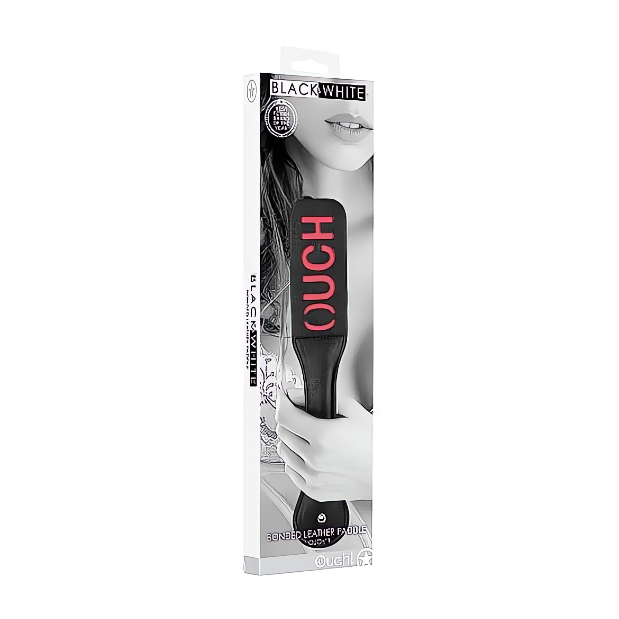 Make a bold statement with the Ouch! Black & White Bonded Leather Paddle.