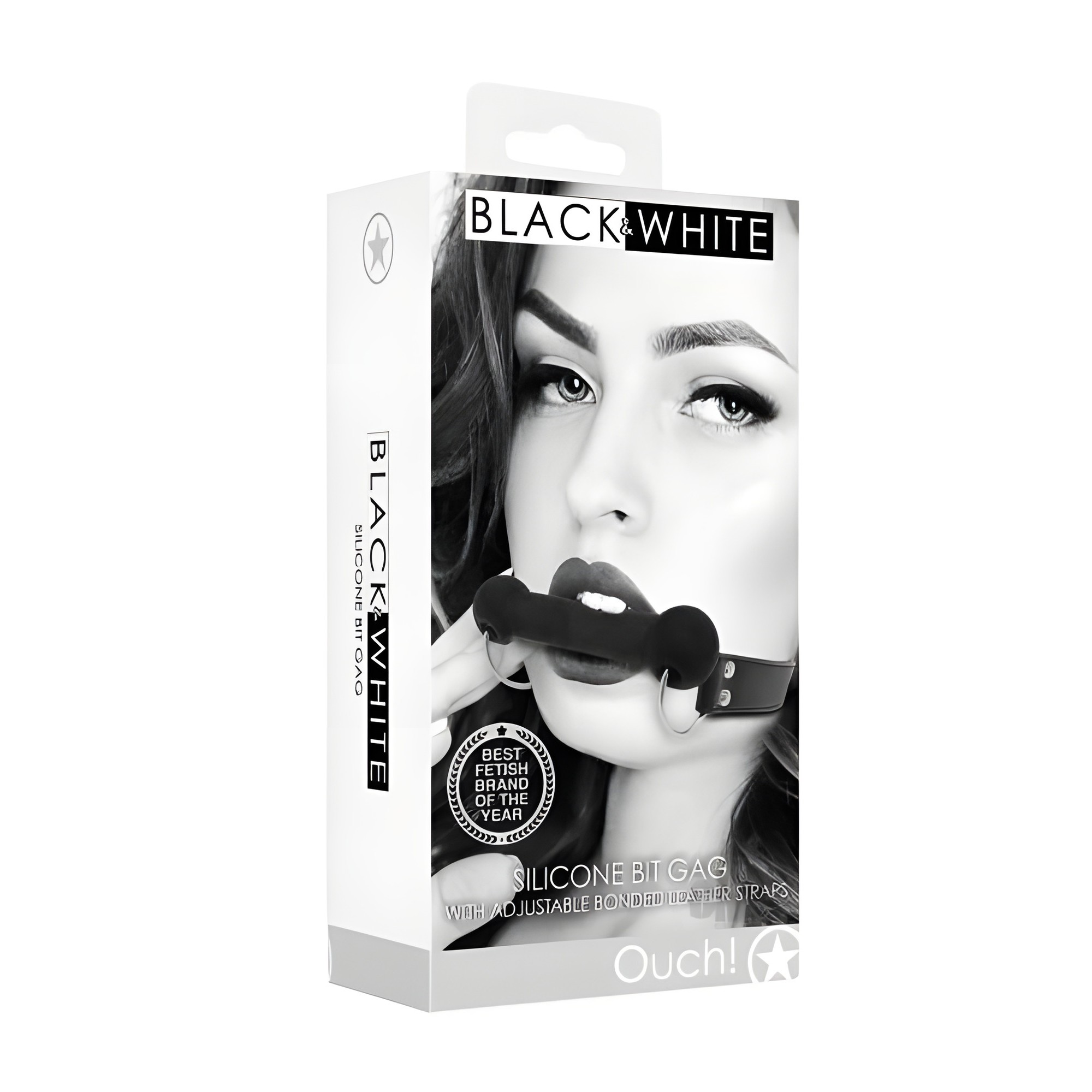 Enhance your BDSM play with the Ouch! Black & White Silicone Bit Gag.