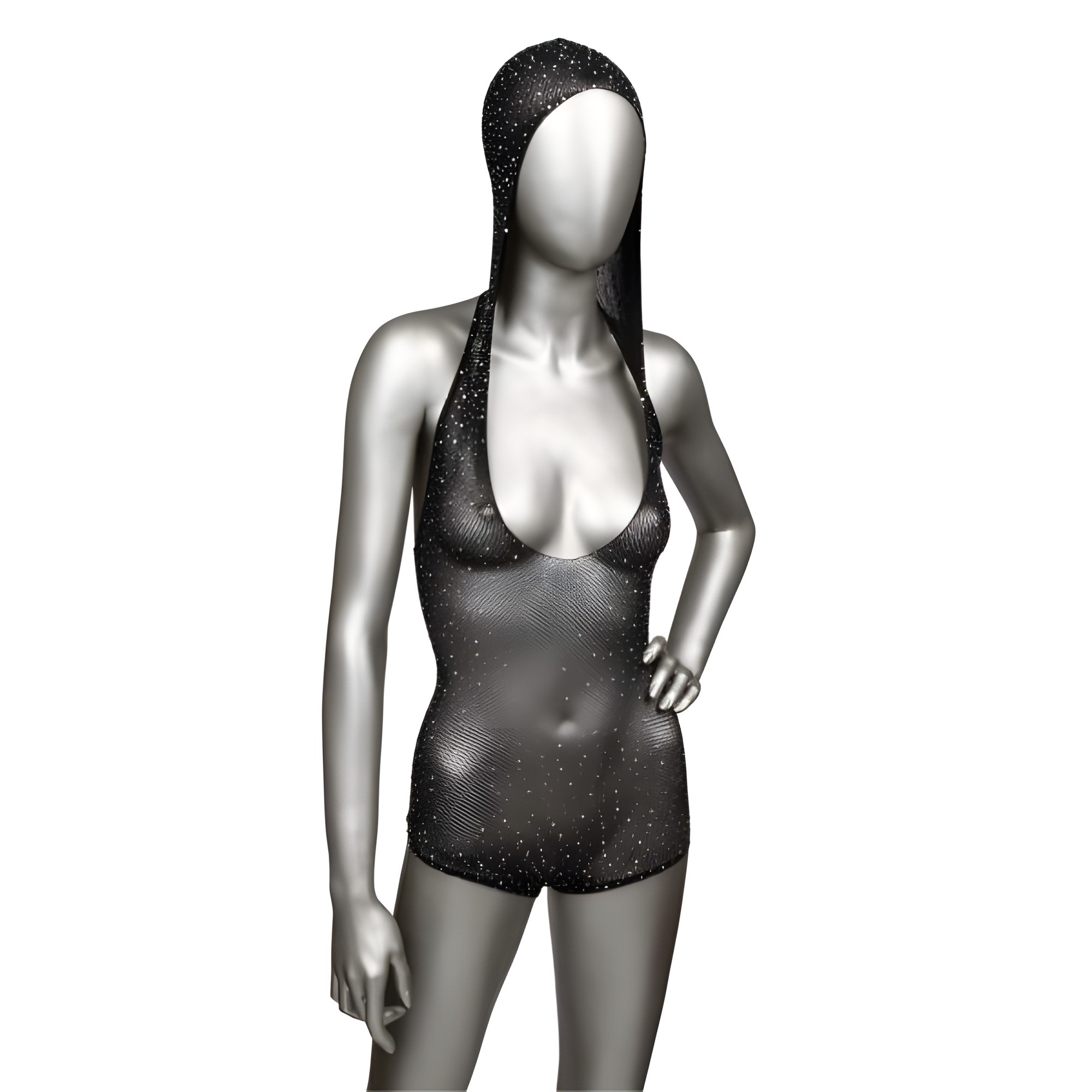 This bodysuit is everything! The hood adds a unique touch, and the rhinestones catch the light beautifully. It fits like a glove and makes for a fantastic outfit for a night out.