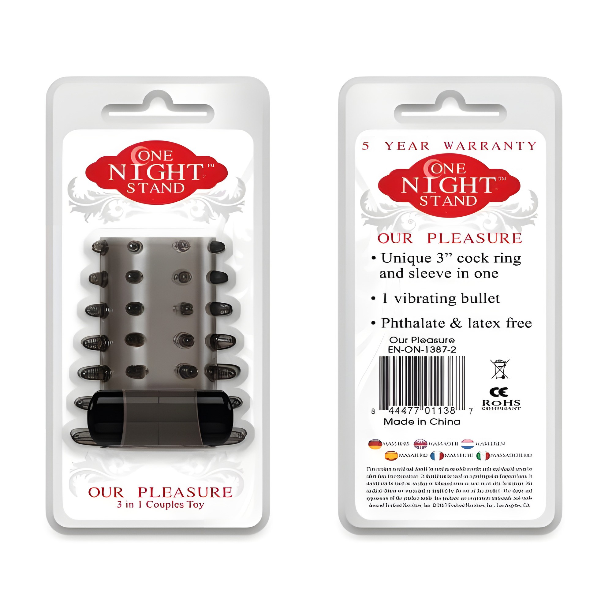 The One Night Stand Couples Toy is fabulous! I love the vibrating feature and the nubs add a whole new level of pleasure. Works great for both of us - an essential piece for enhancing our intimacy.
