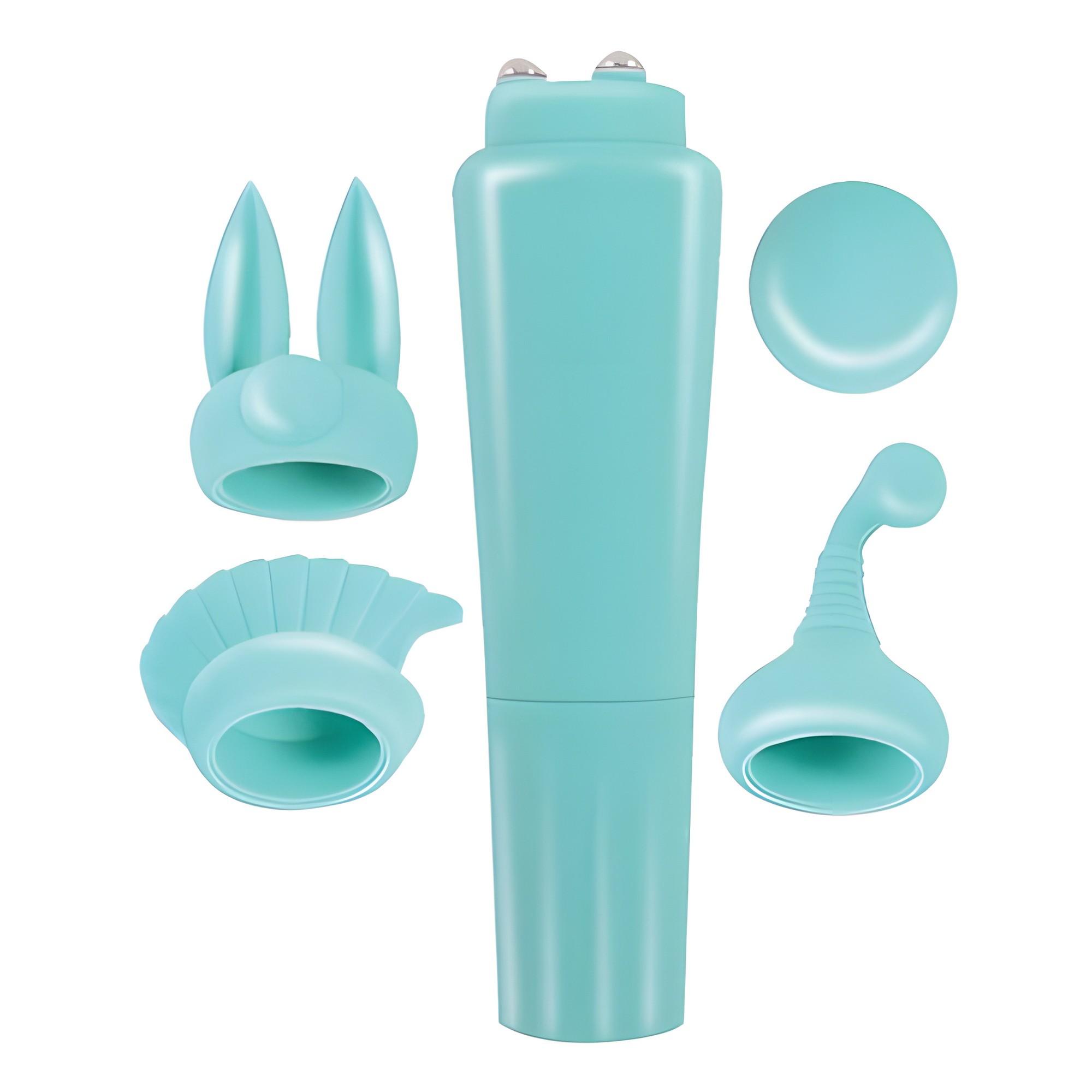 Este kit incluye un potente masajeador estilo pocket rocket y 4 diferentes accesorios diseñados para una máxima estimulación.