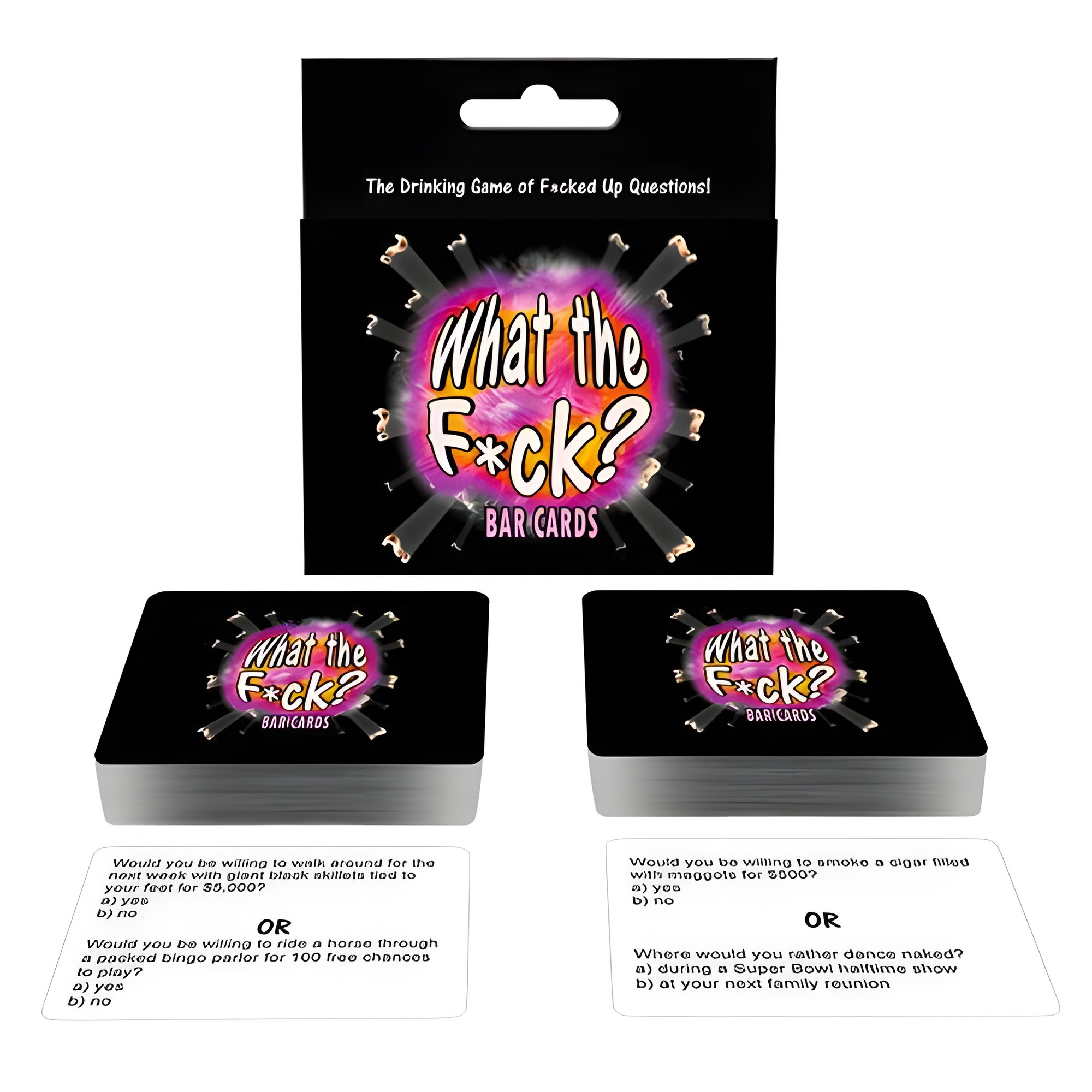 ¡Prepárate para una noche salvaje con el juego de bar ¿Qué Demonios?! Con más de 200 preguntas escandalosas, este juego garantiza diversión y risas para 2 a 100 jugadores.