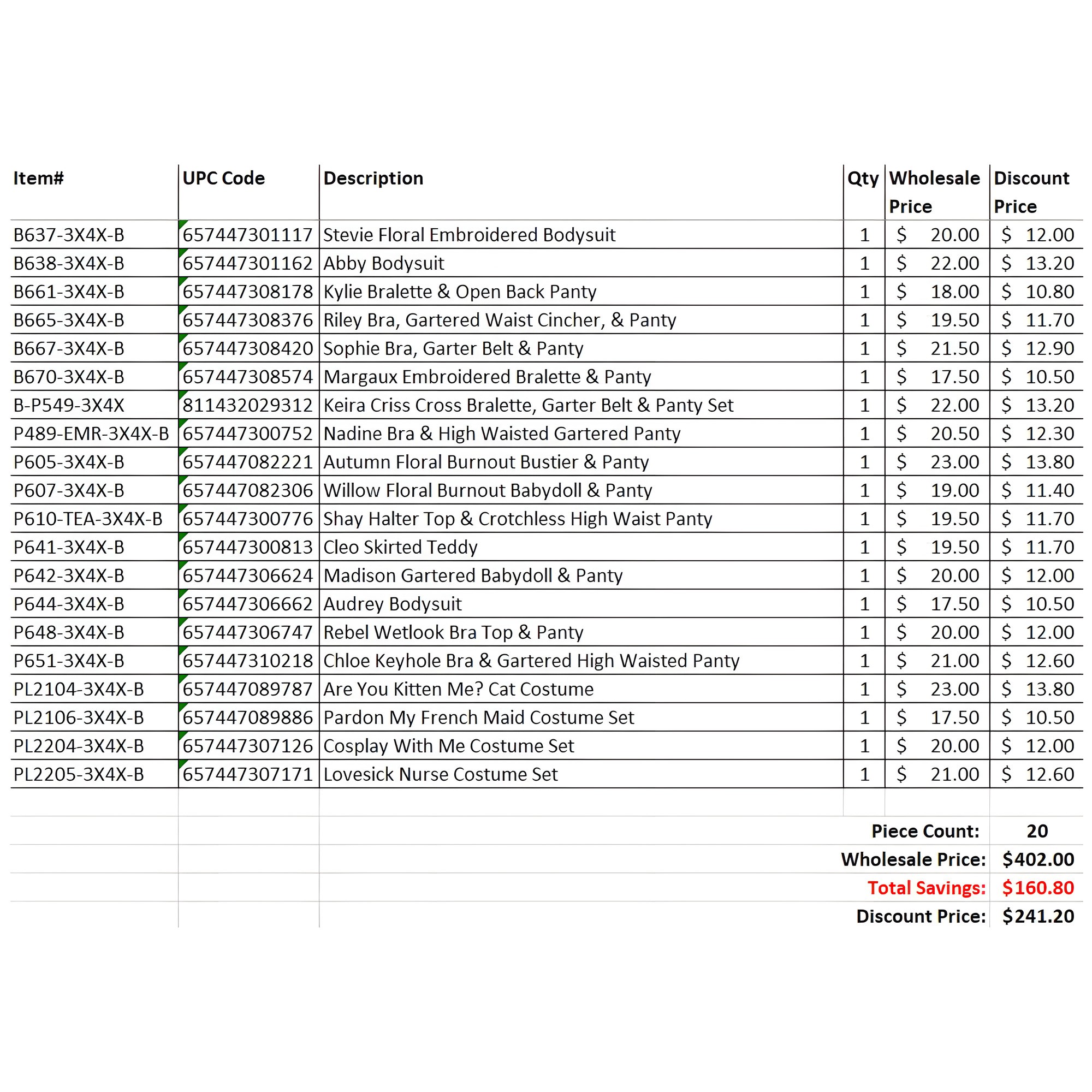 ¡Disfruta de una variedad de estilos sexys con la Bolsa Sorpresa de 20 Piezas 3X/4X Mezcla A! Esta colección presenta una emocionante selección de piezas de lencería.