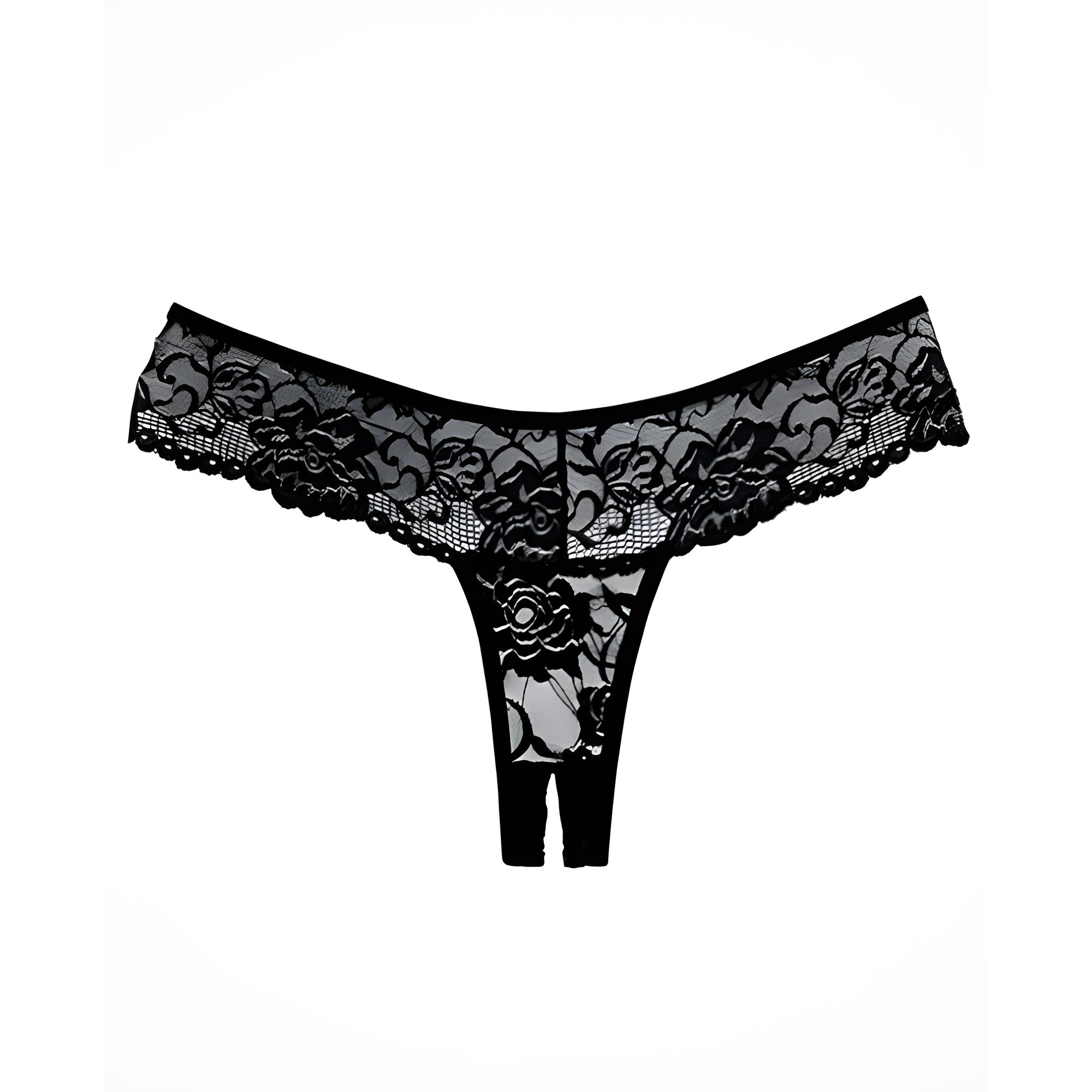 Estas femeninas braguitas de encaje presentan un diseño floral transparente y una parte trasera tipo tanga.